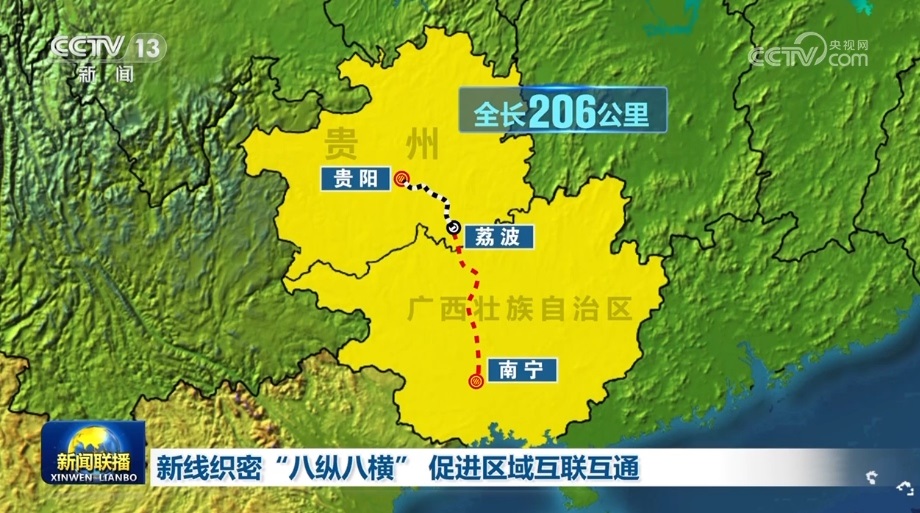 貴南高鐵連接貴陽(yáng)和南寧,是“八縱八橫”高鐵網(wǎng)包頭至??谕ǖ赖闹匾M成部分。正線全長(zhǎng)482公里,是黔桂兩地首條設(shè)計(jì)時(shí)速達(dá)350公里的高速鐵路。此次開(kāi)通的貴陽(yáng)至荔波段,全長(zhǎng)206公里,貴陽(yáng)至荔波最快只需57分鐘。