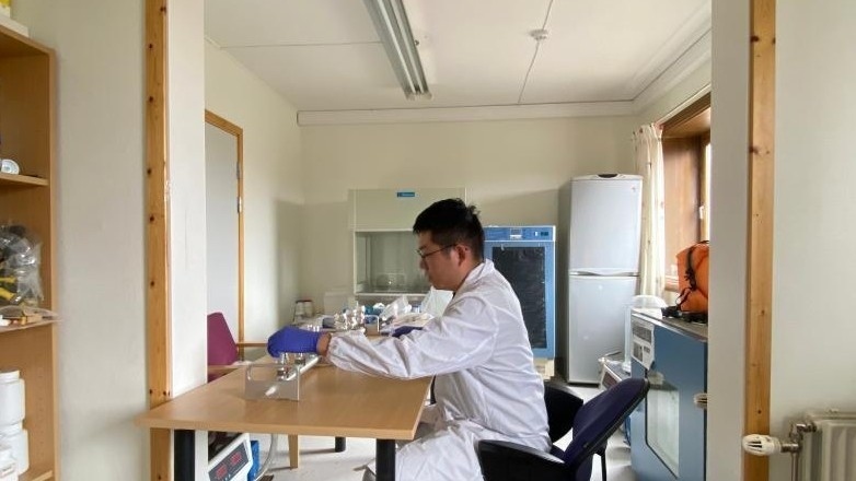 △2023年7月25日,一名中國(guó)科考隊(duì)員在挪威斯瓦爾巴群島新奧勒松的中國(guó)北極黃河站工作。