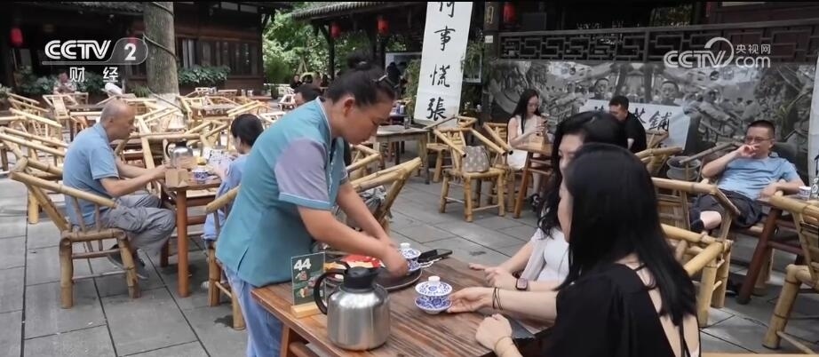 茶鋪店長 包靜:其實,水街開街我們這邊生意還不是特別好,但是隨著成都的發(fā)展跟網(wǎng)絡(luò)達(dá)人的推廣,然后游客們也是口口相傳。因為外地人來成都就是三件事,吃火鍋、看熊貓、喝壩壩茶,就一定要來感受一下壩壩茶。