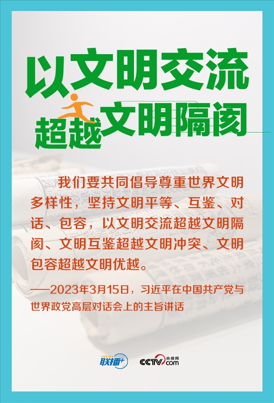文明因交流而多彩,文明因互鑒而豐富。今年3月,在中國(guó)共產(chǎn)黨與世界政黨高層對(duì)話會(huì)上,習(xí)近平主席首次提出全球文明倡議,主張“共同倡導(dǎo)尊重世界文明多樣性”,為推動(dòng)文明交流互鑒、促進(jìn)人類文明進(jìn)步提供中國(guó)方案。