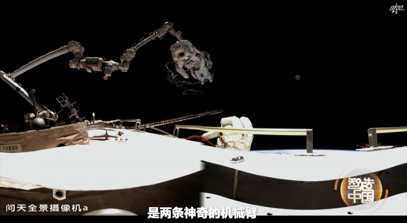 和三位宇航員密切協(xié)同的是兩條“神奇”的機(jī)械臂。