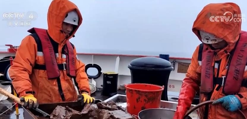 中國第13次北冰洋科學(xué)考察隊隊員 劉坤:大概兩個小時吧。冷,海水比較冷,上來之后在兩(攝氏)度左右,泥的溫度也差不多在兩(攝氏)度。