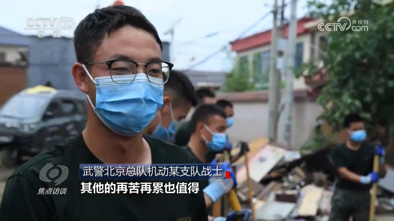 從7月31日接到命令以來,武警北京總隊(duì)機(jī)動(dòng)某支隊(duì)就派出1450人奮戰(zhàn)在一線,前期參與救援,現(xiàn)在是災(zāi)后清淤,每天都要工作十小時(shí)以上。