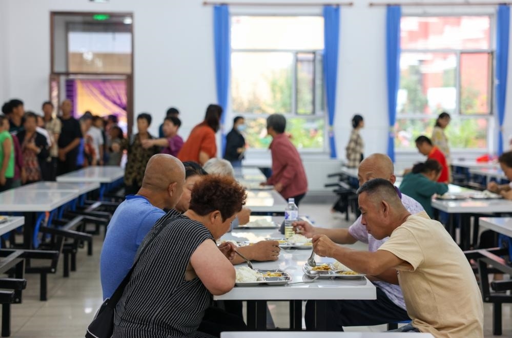 8月11日,村民在舒蘭三中安置點食堂里吃飯。新華社記者顏麟蘊(yùn) 攝