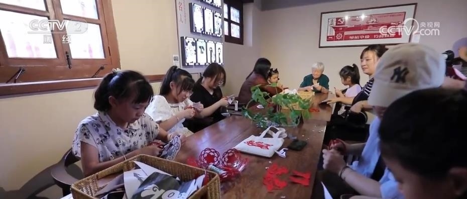 除了傳統(tǒng)店鋪,所城里還融合了很多的非遺體驗(yàn)打卡點(diǎn),萊州毛筆、扎染工藝、葫蘆雕刻等,其中,最具特色的當(dāng)屬民俗剪紙。