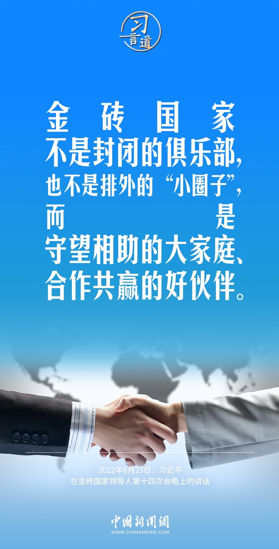 中國(guó)國(guó)家主席習(xí)近平將于8月21日至24日出席在南非約翰內(nèi)斯堡舉行的金磚國(guó)家領(lǐng)導(dǎo)人第十五次會(huì)晤并對(duì)南非進(jìn)行國(guó)事訪問(wèn)。對(duì)于金磚國(guó)家合作機(jī)制,習(xí)近平主席多次在不同場(chǎng)合發(fā)表重要論述,他指出,金磚國(guó)家是守望相助的大家庭、合作共贏的好伙伴。