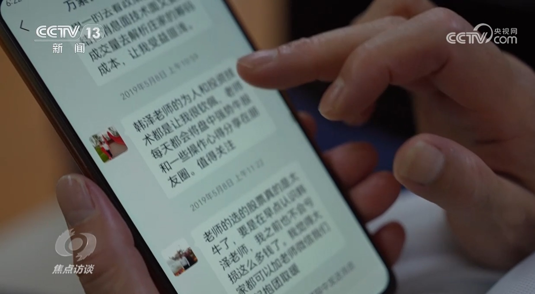 在這個(gè)群里,李女士認(rèn)識(shí)了一個(gè)叫“韓澤”的老師,平時(shí)在群里分享股市消息,晚上還會(huì)開直播課,說什么股能賺錢,指導(dǎo)大家,有的確實(shí)也賺了錢。