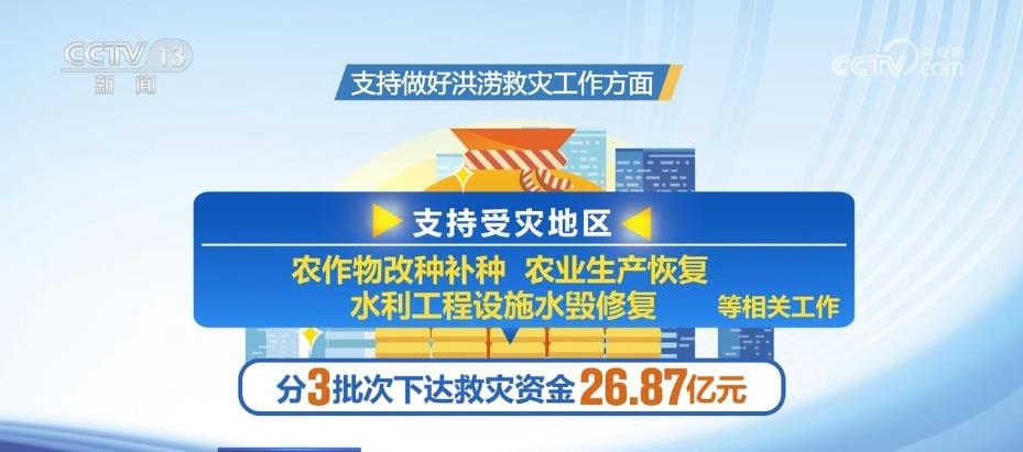 在支持做好洪澇救災(zāi)工作方面,分3批次下達(dá)救災(zāi)資金26.87億元,支持受災(zāi)地區(qū)開(kāi)展農(nóng)作物改種補(bǔ)種、農(nóng)業(yè)生產(chǎn)恢復(fù)、水利工程設(shè)施水毀修復(fù)等相關(guān)工作。