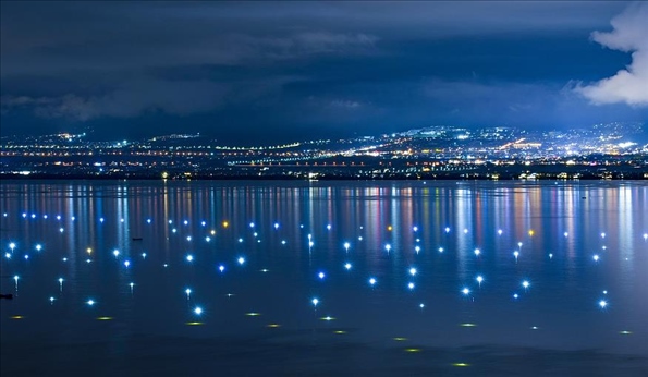 云南大理洱海湖面上,星星點(diǎn)點(diǎn)的漁燈點(diǎn)亮湖面,宛若繁星灑落,如夢(mèng)似幻。