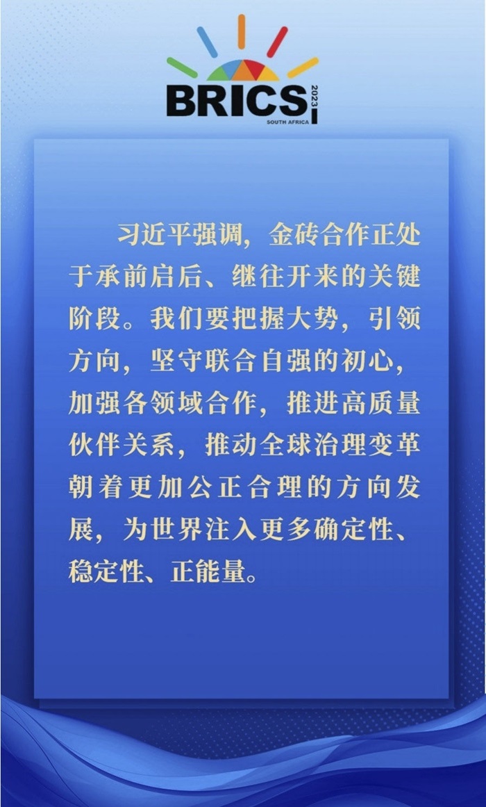 當(dāng)?shù)貢r(shí)間8月23日上午,金磚國家領(lǐng)導(dǎo)人第十五次會(huì)晤在約翰內(nèi)斯堡杉藤會(huì)議中心舉行。南非總統(tǒng)拉馬福薩主持會(huì)晤。中國國家主席習(xí)近平、巴西總統(tǒng)盧拉、印度總理莫迪和俄羅斯總統(tǒng)普京(線上)出席。