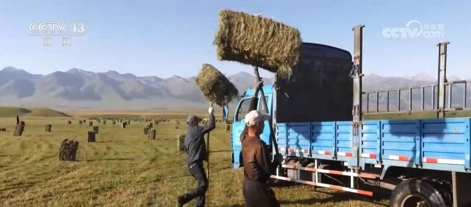 央視網(wǎng)消息:每年八九月,是新疆各地草原的打草季節(jié)。眼下,伊犁新源縣境內(nèi)的那拉提草原已全面進(jìn)入牧草收割季,這里的牧民們都在忙著儲備牲畜的過冬飼料。