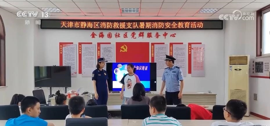 天津公安民警聯(lián)合消防救援人員走進社區(qū),宣傳員叮囑同學(xué)們要注意不能到河流、水庫等沒有安全保障的水域洗澡、游泳,并通過真實的案例傳授在遇到困難與危險情況下的自救和求助方法。
