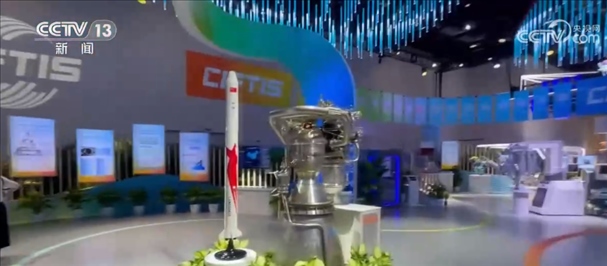 總臺(tái)記者 王豐:這片區(qū)域是綜合展的一個(gè)成就展的專題,這里集中展示了我國(guó)在服務(wù)業(yè)擴(kuò)大開(kāi)放和服務(wù)貿(mào)易創(chuàng)新發(fā)展方面所取得的一系列成就。比如說(shuō)這個(gè),這是我國(guó)民營(yíng)企業(yè)藍(lán)箭航天自主研發(fā)的朱雀二號(hào)火箭,旁邊是自主研發(fā)的天鵲發(fā)動(dòng)機(jī)。今年7月12日,朱雀二號(hào)成功發(fā)射升空,是世界上首款將載荷送入預(yù)定軌道的液氧甲烷火箭。