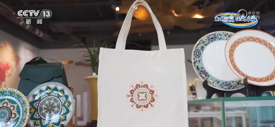 就在采購商們在展示區(qū)實地選樣時,一款包含中國敦煌元素的帆布包吸引了大家的注意。這是前段時間,一家意大利的時尚企業(yè)從基地采購設計的產(chǎn)品。