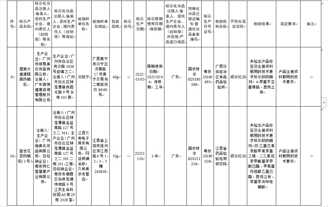 國家藥監(jiān)局網(wǎng)站今天發(fā)布通告稱,在2023年國家化妝品抽樣檢驗(yàn)工作中,經(jīng)重慶市食品藥品檢驗(yàn)檢測研究院等單位檢驗(yàn),產(chǎn)品標(biāo)簽標(biāo)示為廣州市天科化妝品有限公司生產(chǎn)的天科染發(fā)膏(自然黑)等23批次化妝品不符合規(guī)定(見下圖表格)。