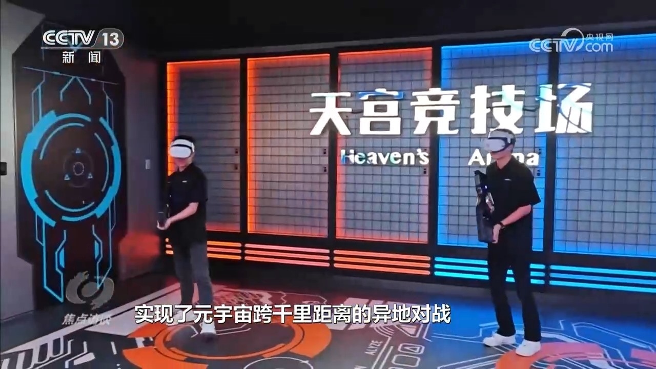 閃爍的霓虹燈配合賽博朋克風(fēng)的藝術(shù)裝置,在鋼鐵高爐里上演光影秀,相隔千里的玩家在同一個元宇宙幻境中聯(lián)手突圍,服貿(mào)會期間,這里每天都有十幾場動感燈光秀和中國自主研發(fā)的VR競技項目展示。