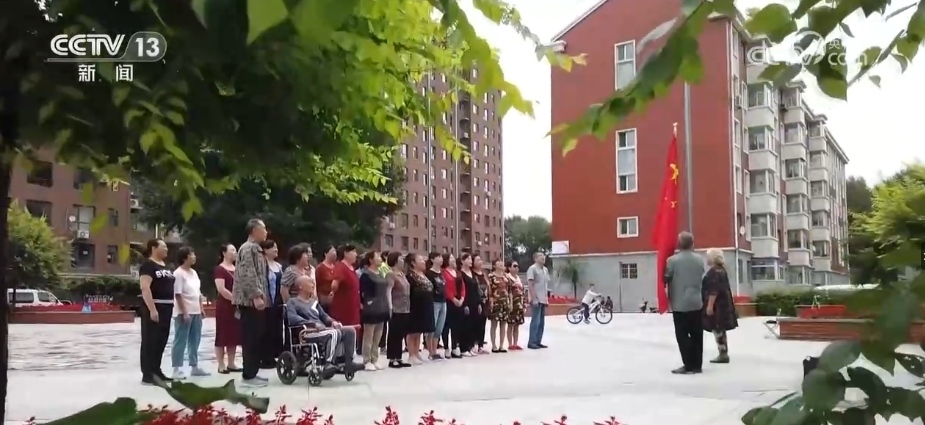 國(guó)慶假期,早上8時(shí),小區(qū)升旗儀式準(zhǔn)時(shí)開始。