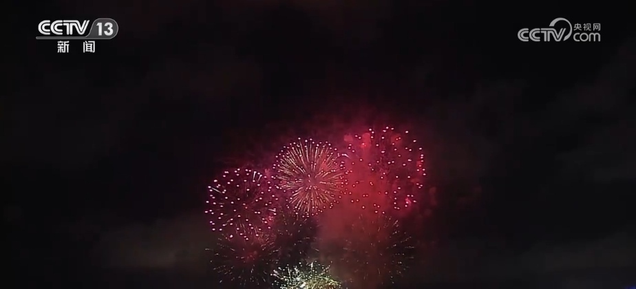 晚上9時(shí),來(lái)自中國(guó)的煙花公司呈現(xiàn)了以“焰之頌歌”為主題的煙花表演。伴隨著大氣磅礴的中國(guó)風(fēng)音樂(lè),形式多樣的煙花在夜空中輪番綻放,引來(lái)人群的陣陣歡呼和喝彩,將澳門(mén)的國(guó)慶氛圍推向高潮。