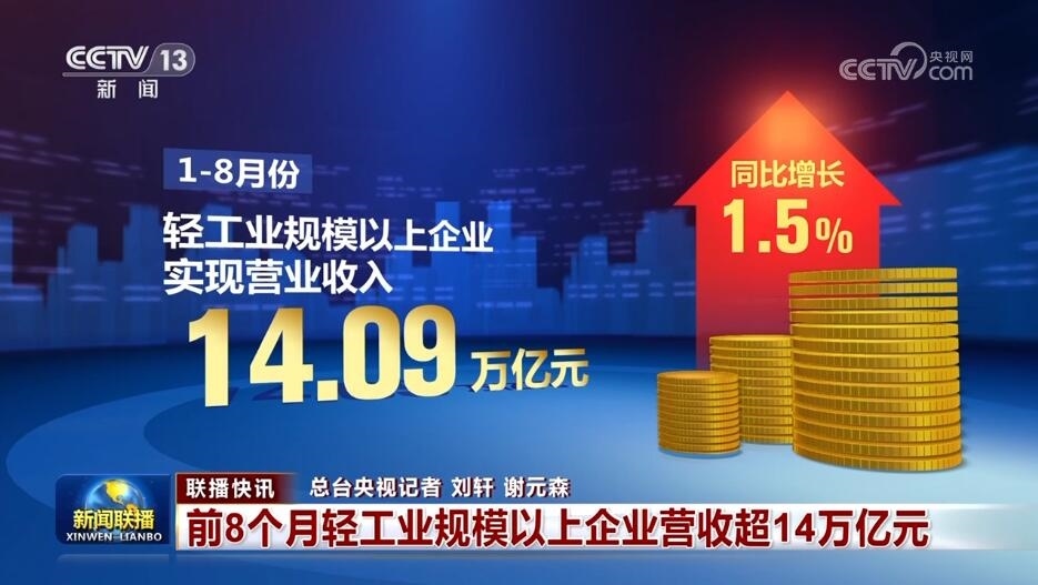 前8個(gè)月輕工業(yè)規(guī)模以上企業(yè)營收超14萬億元