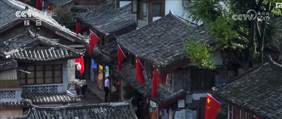 云南麗江:古城青磚黛瓦 國旗迎風(fēng)飄揚