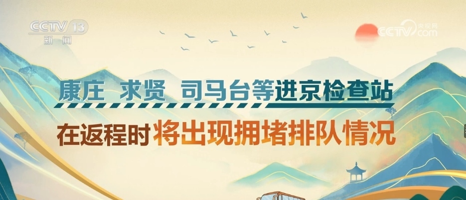 為應(yīng)對(duì)假期返程客流,交通部門加強(qiáng)組織做好地面交通銜接和保障。北京交通部門預(yù)計(jì),10月6日10時(shí)—22時(shí),京平高速北務(wù)服務(wù)區(qū)、京港澳高速竇店服務(wù)區(qū)進(jìn)京方向車流量大??登f、求賢、司馬臺(tái)等進(jìn)京檢查站在返程時(shí)將出現(xiàn)擁堵排隊(duì)情況。