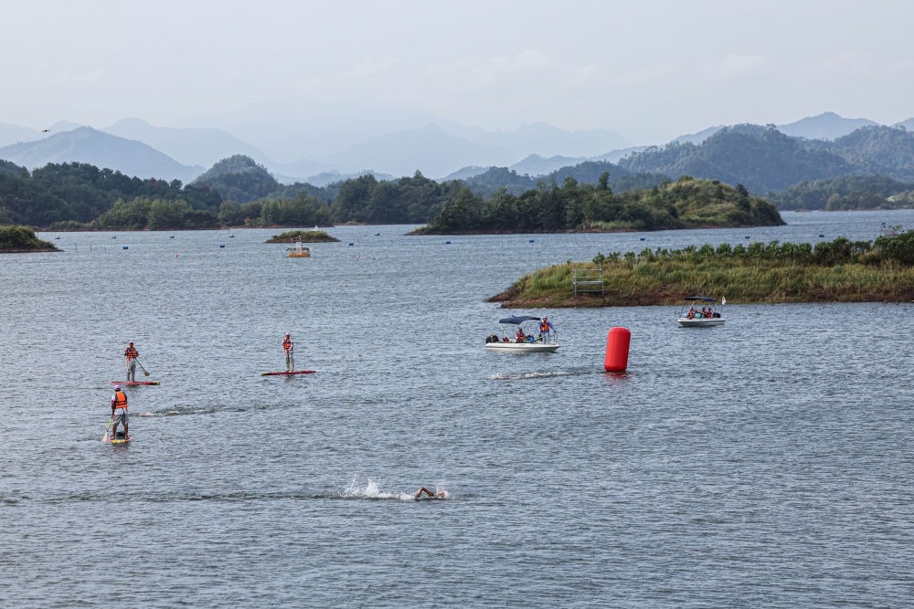 杭州主城區(qū)西南方約200公里,淳安縣千島湖秀水畔的界首鄉(xiāng),水域廣闊、港灣曲折,沿線騎行、徒步的游客絡(luò)繹不絕。杭州亞運(yùn)會(huì)自行車、鐵人三項(xiàng)等比賽在這里如火如荼地展開。