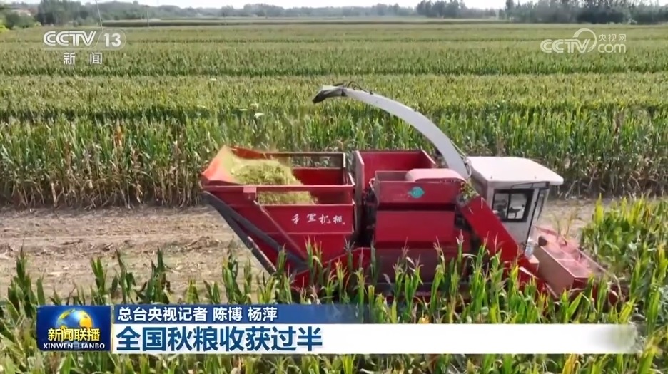 央視網(wǎng)消息(新聞聯(lián)播):農(nóng)業(yè)農(nóng)村部最新農(nóng)情調(diào)度顯示,眼下全國秋糧收獲過半,主產(chǎn)區(qū)已進(jìn)入收獲高峰。