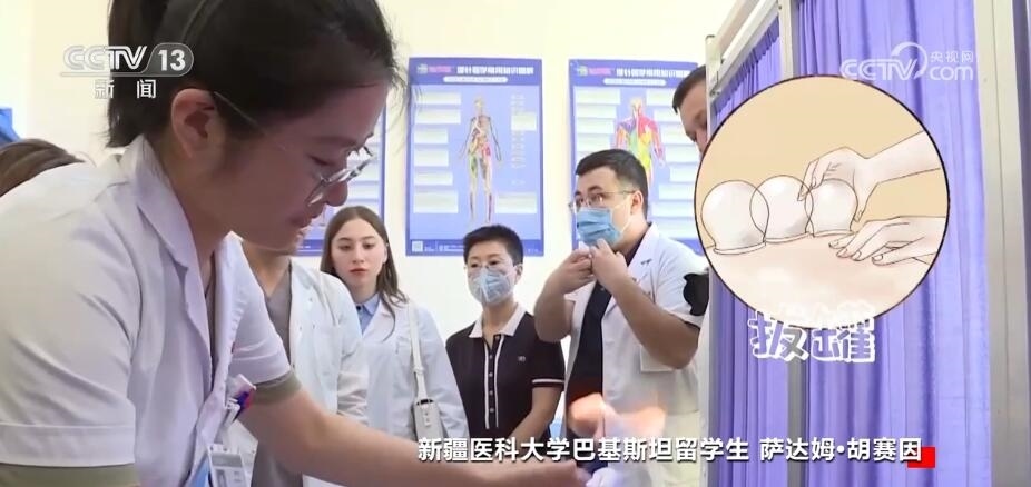 新疆醫(yī)科大學(xué)巴基斯坦留學(xué)生 薩達(dá)姆?胡賽因:“一帶一路”以后,對(duì)我們的老百姓也有很大的幫助,主要是中國的醫(yī)生過去。我是前面胳膊拉傷,中醫(yī)醫(yī)生就給我揉一揉,拍我的這個(gè)肩膀胳膊,拍了差不多200次,后面給我拔罐兒,做了一次,我基本上就沒疼了。我覺得這個(gè)很神奇。
