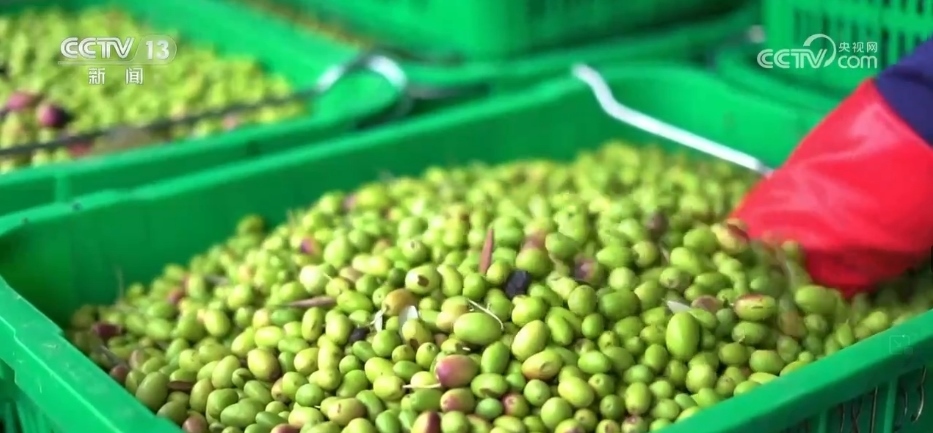 甘肅隴南武都區(qū)是我國油橄欖主產區(qū)。這里的60萬畝油橄欖現(xiàn)在進入采摘期,當?shù)亟M織人員加緊采摘,并及時進行精深加工。