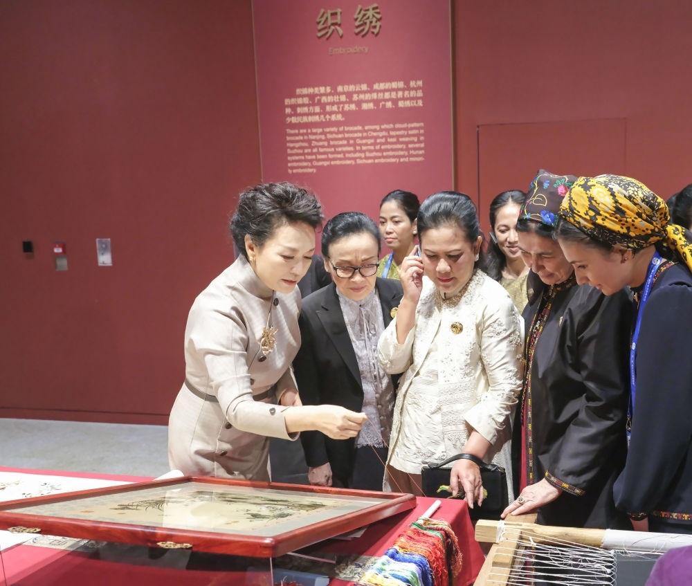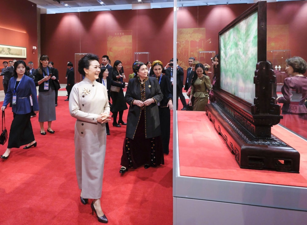 新華社北京10月18日電(記者溫馨)10月18日上午,國家主席習近平夫人彭麗媛邀請出席第三屆“一帶一路”國際合作高峰論壇的外方領導人夫人參觀中國工藝美術館(中國非物質文化遺產(chǎn)館)。