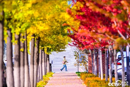 2023年10月17日,沈陽農(nóng)業(yè)大學迎來最佳觀賞季,金黃的銀杏、火紅的楓樹,吸引人們前來打卡拍照。