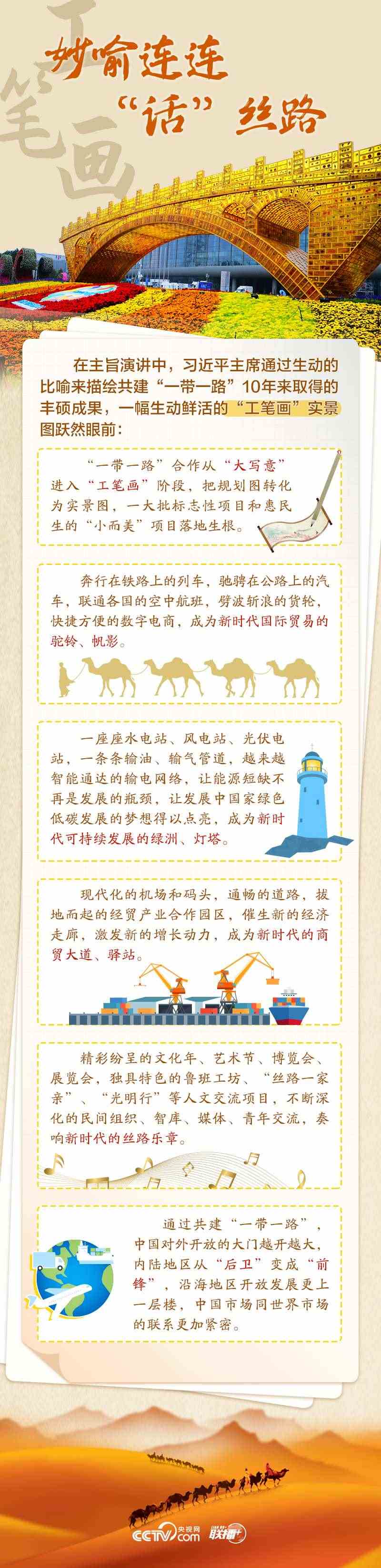 站在共建“一帶一路”倡議走過(guò)十年這個(gè)標(biāo)志性節(jié)點(diǎn),這幅“工筆畫”呈現(xiàn)怎樣的實(shí)景圖?高質(zhì)量共建“一帶一路”如何再出發(fā)?央視網(wǎng)《聯(lián)播+》欄目從五個(gè)維度為您速讀習(xí)主席講話,與您一同學(xué)習(xí)。