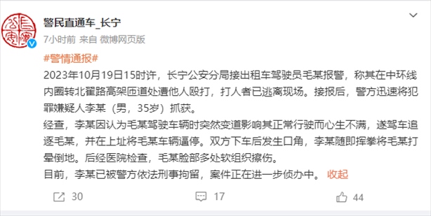 ·男子別停出租車打暈司機(jī),警方:對(duì)出租車突然變道心懷不滿,已刑拘。