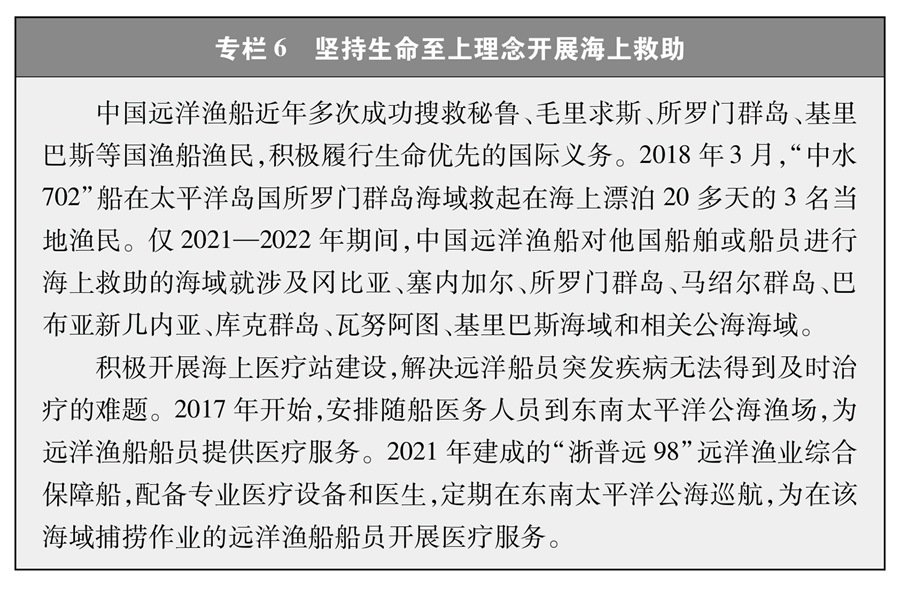 中國持續(xù)提升遠洋漁業(yè)基礎(chǔ)設施現(xiàn)代化水平,著眼于安全、環(huán)保、可持續(xù)和勞工保護等目標,在控制遠洋漁船規(guī)模的同時,不斷改善漁船安全和船員生活環(huán)境。