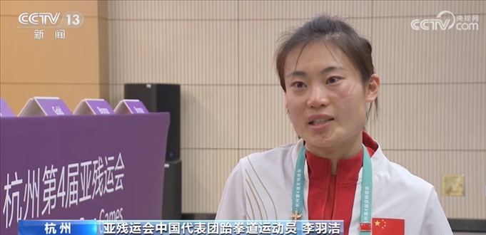 中國運(yùn)動員李羽潔在杭州第4屆亞殘運(yùn)會女子跆拳道58公斤級K44級比賽中獲得銅牌,雖然獲得了獎牌,但李羽潔還是偷偷哭了鼻子,她說最遺憾的是在半決賽中,她以1分之差,無緣爭金。