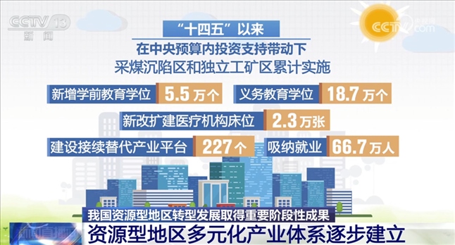 國家發(fā)展改革委負責(zé)人還表示,廣大資源型地區(qū)以解決人民群眾最關(guān)心、最直接、最現(xiàn)實的利益問題為轉(zhuǎn)型突破口,加快補短板、強弱項,人民群眾的獲得感、幸福感、安全感不斷提升。