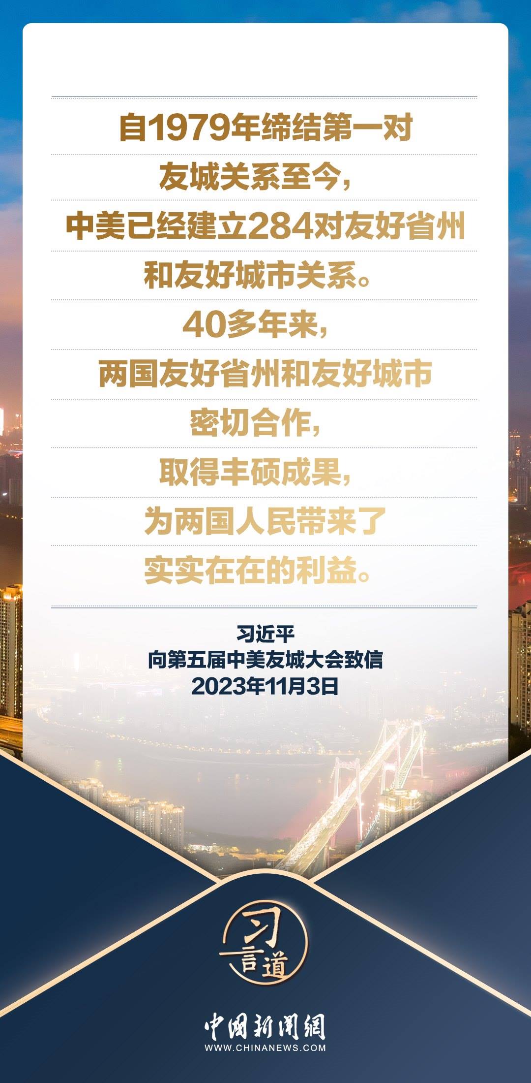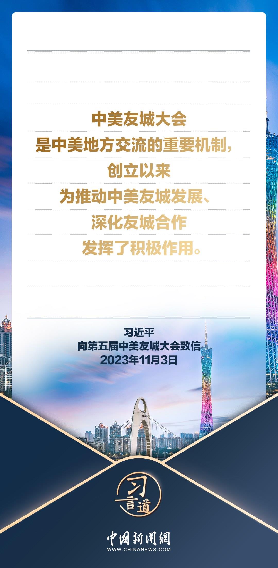 11月3日,國家主席習(xí)近平向第五屆中美友城大會致信。習(xí)近平指出——