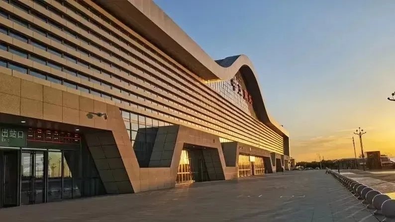 站房頂部呈沙黃色波浪形結(jié)構(gòu)