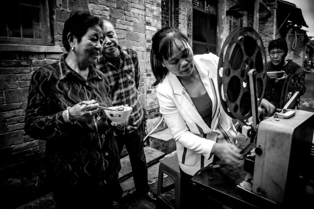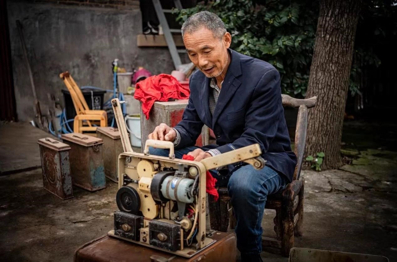 1983年,鄉(xiāng)里成立了電影放映隊,曹毅成了隊長,還參加了電影培訓班,扎扎實實地學了放映技術(shù)、電工等好多課程,成了專業(yè)的放映員。那時片源少,一張片子各個鄉(xiāng)排期輪流放映,讓曹毅最開心的事,就是坐上幾個小時的公交車去縣里拿膠片。有時揣著膠片回來的路上就忍不住想樂,哪回放新電影都像打仗一樣,人山人海,得防著別碰壞了放映機,還得留心會有哪個村連夜來搶放映機。“總有一萬人,銀幕前后都是人,背面都有人看。在稻田里面把那稻子割完了以后,電影就在稻場里面放,不然地方不夠大。”空氣中飄著稻谷的香味,不少人會盤腿坐在地上,扎扎實實看完一部電影。