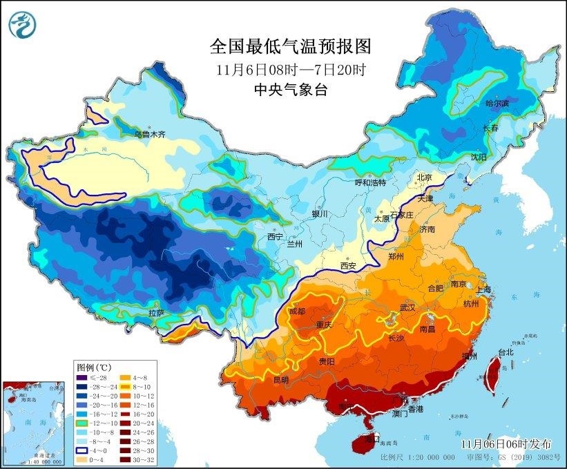 寒潮藍(lán)色預(yù)警:受強(qiáng)冷空氣影響,預(yù)計(jì),11月6日08時(shí)至11月7日20時(shí),內(nèi)蒙古東部、東北地區(qū)中南部、黃淮東部、江淮東部和南部、江南東部等地大部將先后降溫6~8℃,其中,內(nèi)蒙古東南部、東北地區(qū)中南部等地部分地區(qū)降溫可達(dá)10~14℃。最低氣溫0℃線將位于河北北部、天津北部、山西南部至陜西關(guān)中平原、甘肅東南部一帶,長江中下游以北地區(qū)有4~6級(jí)偏北風(fēng),陣風(fēng)7~9級(jí),局地可達(dá)10級(jí);6日至7日夜間,渤海、黃海、東海等海域有7~8級(jí)風(fēng),最大陣風(fēng)9~11級(jí)。