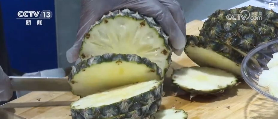 貝寧菠蘿在食品及農(nóng)產(chǎn)品展區(qū)亮相,迅速吸引了一波又一波的現(xiàn)場觀眾,他們也成為首批嘗到貝寧菠蘿味道的中國消費者。