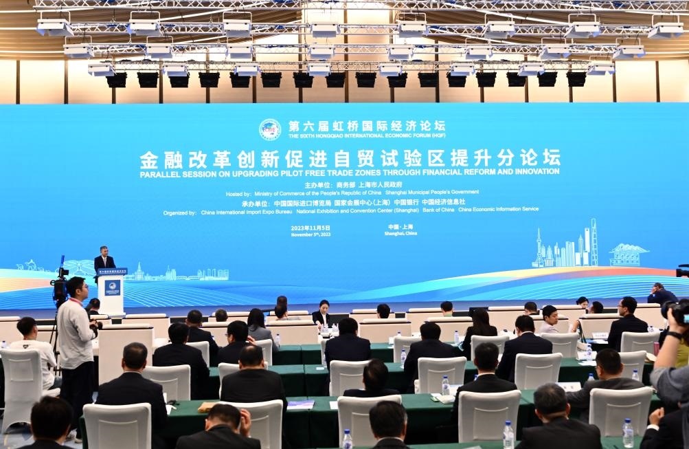 ?11月5日,第六屆虹橋國際經(jīng)濟(jì)論壇“金融改革創(chuàng)新促進(jìn)自貿(mào)試驗區(qū)提升”分論壇在上海舉行。新華社記者 金良快 攝