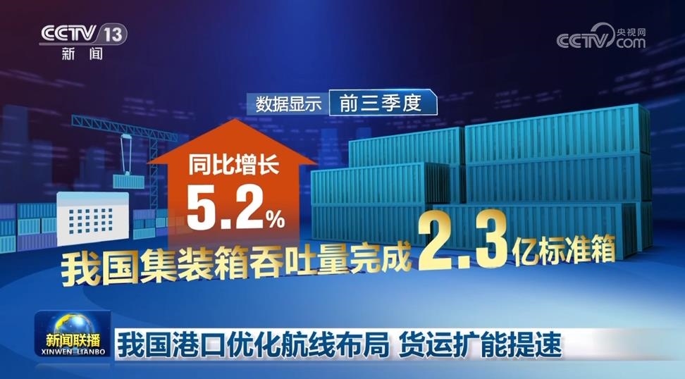 央視網(wǎng)消息(新聞聯(lián)播):今年以來,我國(guó)港口緊跟市場(chǎng)需求,積極優(yōu)化航線布局,加大貨物運(yùn)輸?shù)亩嗍铰?lián)運(yùn),助力我國(guó)經(jīng)濟(jì)發(fā)展。
