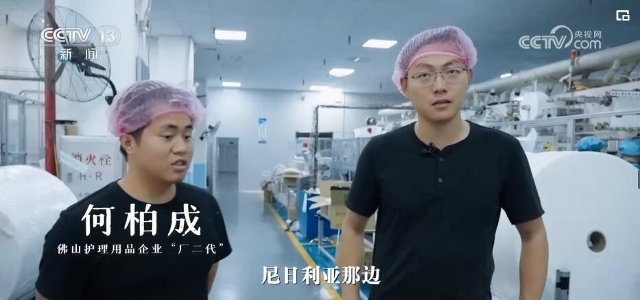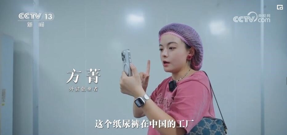 記者:現(xiàn)在方方(方菁)在給她的非洲客戶打視頻電話,來給她更直觀地看,這個(gè)紙尿褲在中國的工廠是怎么生產(chǎn)出來的。
