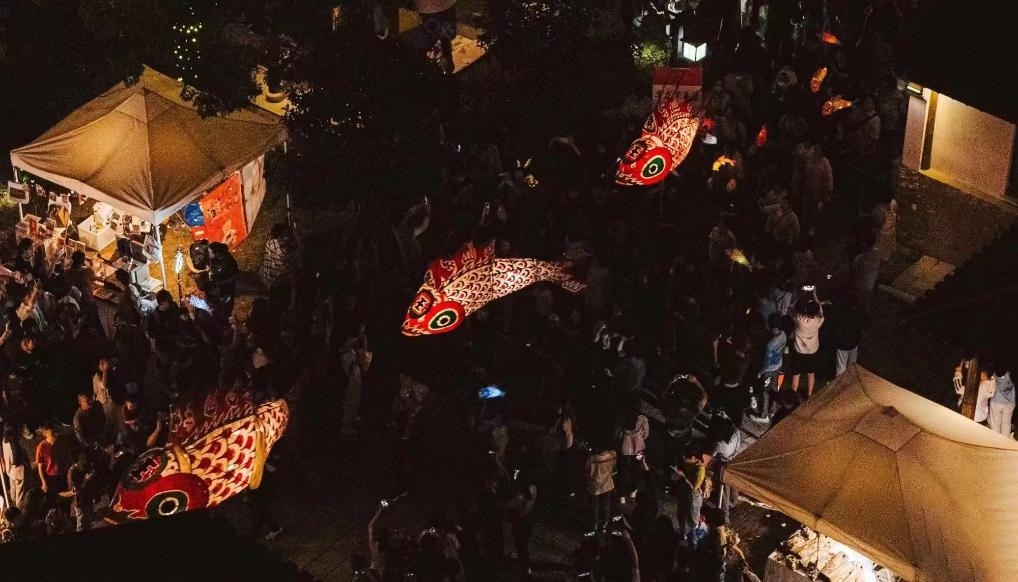 中秋國(guó)慶長(zhǎng)假期間,汪滿田魚(yú)燈參加了蘇州石湖景區(qū)的手作藝術(shù)節(jié)。(張小君 攝)