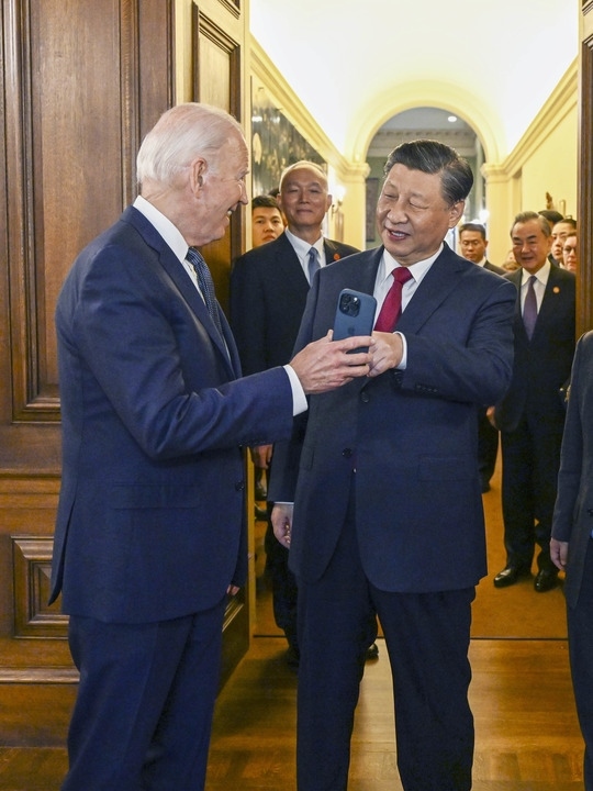 當(dāng)?shù)貢r間11月15日中午,美國舊金山郊外的斐洛里莊園,習(xí)近平主席結(jié)束同美國總統(tǒng)拜登的晤談,出席拜登總統(tǒng)舉行的宴會。拜登在手機上展示1985年習(xí)近平在擔(dān)任正定縣委書記時訪問舊金山的一張照片。