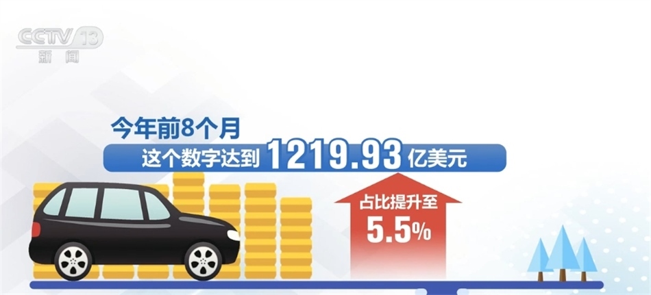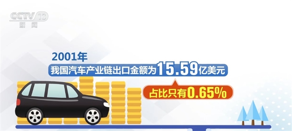 中國(guó)貿(mào)促會(huì)汽車(chē)分會(huì)負(fù)責(zé)人表示,2001年,我國(guó)汽車(chē)產(chǎn)業(yè)鏈出口金額為15.59億美元,占比只有0.65%。今年前8個(gè)月,這個(gè)數(shù)字達(dá)到1219.93億美元,占比提升至5.5%。