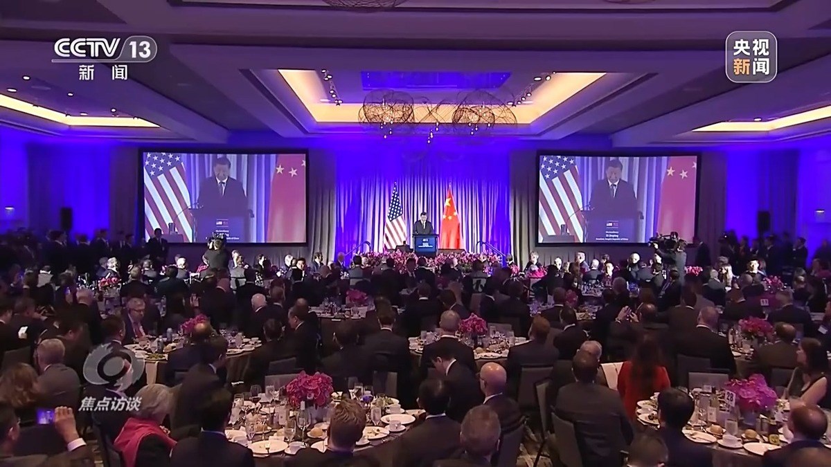 在出席美國(guó)友好團(tuán)體聯(lián)合舉辦的歡迎宴會(huì)演講中,習(xí)近平主席60多次提到“人民”這個(gè)詞。習(xí)近平主席真摯的語言、生動(dòng)的故事,深深打動(dòng)了在場(chǎng)聽眾的心,引發(fā)了強(qiáng)烈共鳴。從西雅圖到舊金山,時(shí)隔8年,習(xí)近平主席同美國(guó)各界友好人士再次親切互動(dòng),讓人們深切感受到,中美友好的基礎(chǔ)還在,交往的動(dòng)力猶存,合作的前景可期。