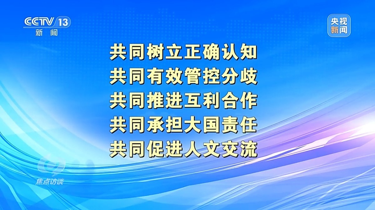習(xí)近平主席深刻指出,中美是選擇加強(qiáng)團(tuán)結(jié)合作,還是挑動(dòng)陣營(yíng)對(duì)抗,將決定人類前途和地球未來。美方必須認(rèn)真思考中美兩國(guó)到底是伙伴還是對(duì)手這個(gè)根本性問題,做出正確歷史選擇。習(xí)近平主席指出,這次舊金山會(huì)晤,雙方應(yīng)設(shè)立新的愿景:一是共同樹立正確認(rèn)知;二是共同有效管控分歧;三是共同推進(jìn)互利合作;四是共同承擔(dān)大國(guó)責(zé)任;五是共同促進(jìn)人文交流。這“五個(gè)共同”為中美關(guān)系澆筑了五根支柱,開辟了面向未來的“舊金山愿景”。