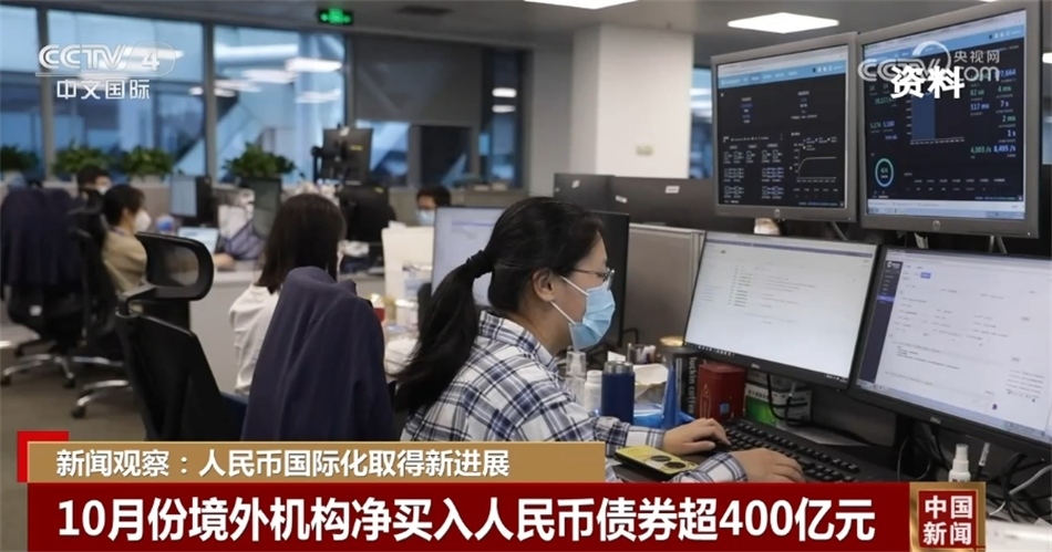 10月,境外機構凈買入人民幣債券超400億元,創(chuàng)下過去四個月以來新高。截至10月末,共有1110家境外機構主體進入中國債券市場,顯示人民幣投融資和避險功能逐步增強。